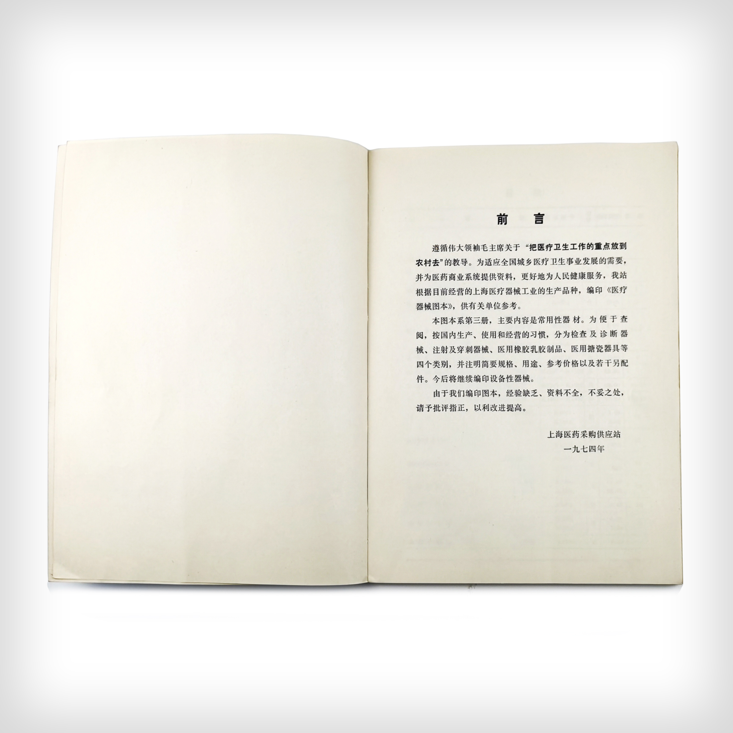 本图本系第三册,主要内容是常用性器材。为便于查阅,按国内生产、使用和经营的习惯,分为检查及诊断器械、注射及穿刺器械、医用橡胶乳胶制品、医用搪瓷器具等四个类别,并注明简要规格、用途、参考价格以及若干另配件。
